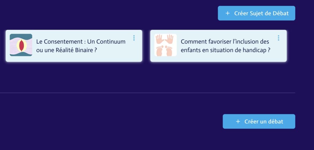Atelier de Sensibilisation sur l’Égalité Femme-Homme et le Consentement : En partenariat avec le Master AGAPES, cet atelier vise à sensibiliser les participants aux questions d’égalité des genres et de consentement, en utilisant des supports interactifs et créatifs (application https://roueduconsentement.com, outils vidéo, jeu de société).